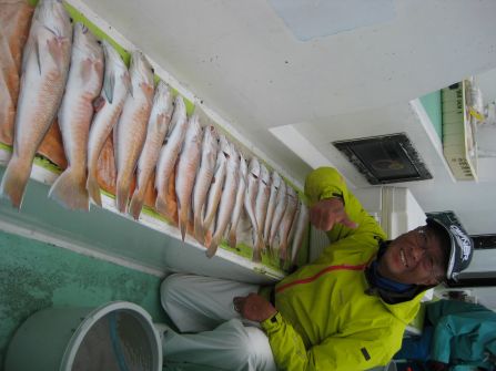 | 白アマダイ狙い・・・最大は1.22㎏ 開始1時間のみ当たり遠かったですがその後、当たり多い流しもありお土産 竿頭は伊藤秀樹さん。ツ抜けが本日も3名 |