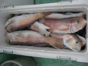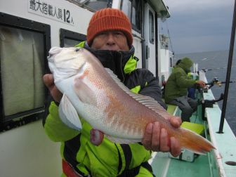 | 白アマダイ狙い・・・ポツポツ食いつづく 1尾以外は3尾から上でした。竿頭は 中村さん (写真) 星野さん 1.21㎏ 藤原さん 1.14㎏ |