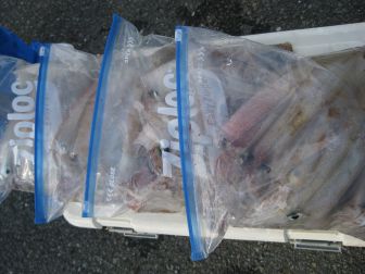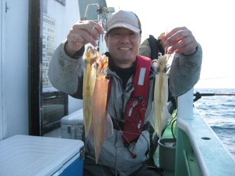 | ヤリイカで出船。中型増えました 最大4点掛けも有りましたが、単発多かった。足&墨だけも・・・ お昼過ぎからは乗り上向きました。 |