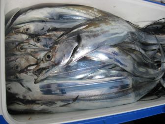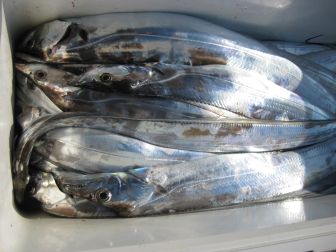 | 太刀魚・・・最大0.93㎏。 終日ポツポツ 後半良型多かった。写真は池田さんと門谷さん釣り魚。竿頭は坂下さんです。 坂下さん!太刀魚ご馳走様でした&ありがとうございました |