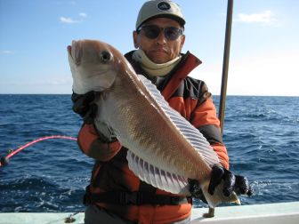 白アマダイ 27~52㎝ 1~5尾 カンパチ 1.2㎏ 1本 他・レンコ鯛、イトヨリ、ソコイトヨリ アオハタ、カイワリ 白アマダイ狙い! 単発の中に大型あり (写真) 飯田さんです 1.75㎏ 昨日に続いて大物ゲットです おめでとうございます |