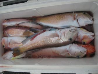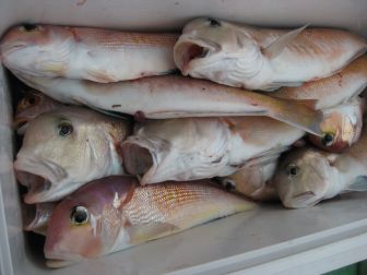魚種 白アマダイ 27~50㎝ 1~10尾 赤アマダイ 38㎝ 1尾 他・レンコ鯛、アジ、イトヨリ ソコイトヨリ、アオハタ 白アマダイ狙い・・・まずまずの型 9 8 7 5 ・・・・・・と 終日ポツポツ食いつづく!! 竿頭は飯田さんです |