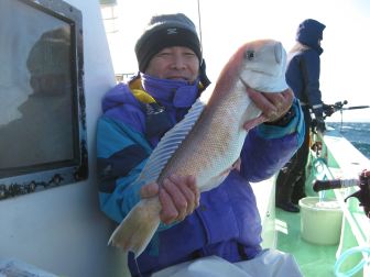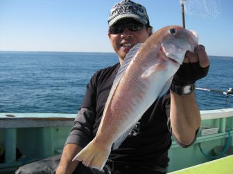 魚種 白アマダイ白 26~45㎝ 1~12尾 他・アジ、アオハタ、カイワリ レンコ鯛、コウイカ アマダイ狙い・・・ポツポツ食いつづく 1尾以外は3尾から上でした。竿頭は 中村さん (写真) 星野さん 1.21㎏ 藤原さん 1.14㎏ コウイカは前澤さん |